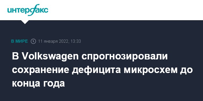 Москва. 11 января. INTERFAX.RU - Германский автопроизводитель Volkswagen AG, один из крупнейших в мире, ожидает замедления инфляции в еврозоне позднее в текущем году, но не ждет существенных улучшений ситуации с мировым дефицитом полупроводников, в результате которого многие автопроизводители были вынуждены сократить объемы производства.