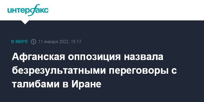 Москва. 11 января. INTERFAX.RU - Противостоящий движению "Талибан" (террористическая организация, запрещенная в РФ) Фронт национального сопротивления назвал безрезультатными прошедшие в Тегеране переговоры с талибами.
