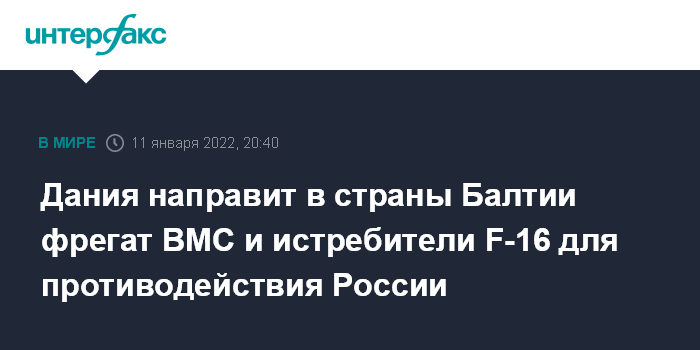 Датский фрегат прибудет в Балтийское море в середине января на три месяца. F-16 будут направлены на авиабазу Шауляй в Литву, где у настоящее время уже находятся восемь датских истребителей.