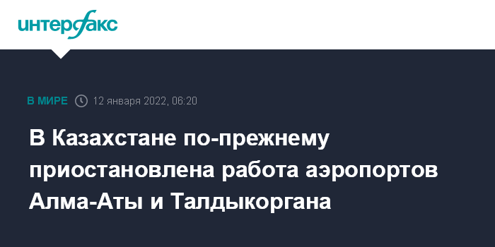 Москва. 12 января. INTERFAX.RU - В Казахстане пока не возобновилась работа двух аэропортов - в Алма-Ате и Талдыкоргане, сообщил министр индустрии и инфраструктурного развития Каирбек Ускенбаев.
