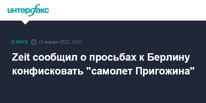 Москва. 12 января. INTERFAX.RU - Администрация США просит Германию конфисковать частный самолет, который, как утверждается, принадлежит российскому бизнесмену Евгению Пригожину, Берлин отказывается это делать, узнал еженедельник Die Zeit.