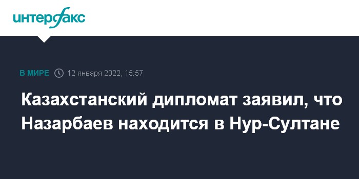 "Назарбаев находится в столице Казахстана. Он провел несколько телефонных разговоров с руководителями дружественных стран и находится в постоянном контакте с президентом Казахстана Касым-Жомартом Токаевым. Он следит за ситуацией", - сказал дипломат.
