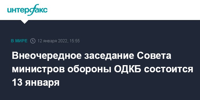 "Заседание пройдет 13 января в режиме видеоконференцсвязи", - сообщил "Интерфаксу" в среду пресс-секретарь ОДКБ Владимир Зайнетдинов.
