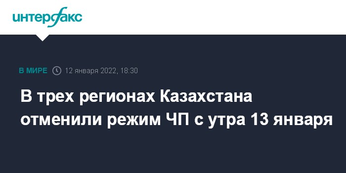 Согласно этим документам, режим ЧП отменяется в границах этих регионов с 7:00 13 января 2022 года.