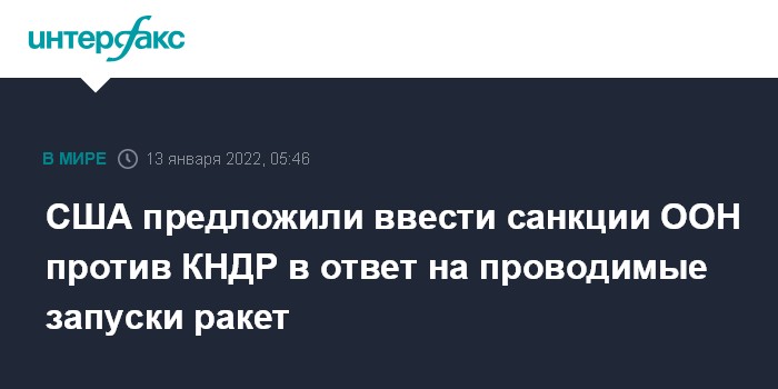 Москва. 13 января. INTERFAX.RU - Постпред США при ООН Линда Томас-Гринфилд сообщила, что США предлагают ввести новые санкции ООН против КНДР в ответ на производимые страной запуски баллистических ракет.