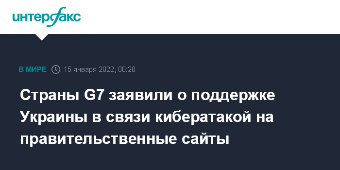 Страны G7 заявили о поддержке Украины в связи кибератакой на правительственные сайты
