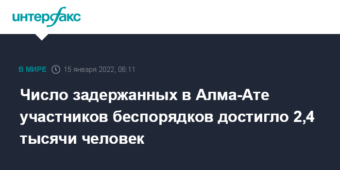 Число задержанных в Алма-Ате участников беспорядков достигло 2,4 тысячи человек