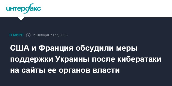 США и Франция обсудили меры поддержки Украины после кибератаки на сайты ее органов власти