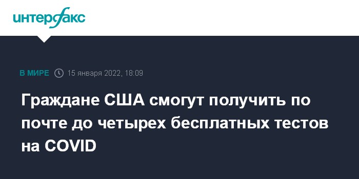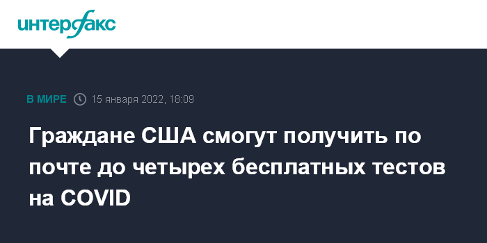 Сервис COVIDTests.gov начнет работать в США 19 января 2022 года. Одна американская семья сможет заказать через интернет не более четырех бесплатных тестов. Тесты будут доставляться на дом бесплатно, срок доставки составит 7-12 дней.