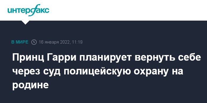 Москва. 16 января. INTERFAX.RU - Принц Гарри грозит подать судебный иск против британского правительства с требованием вернуть ему защиту полиции во время его визитов в Великобританию. Об этом пишет BBC News.