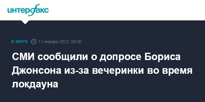 Москва. 17 января. INTERFAX.RU - Представитель Службы высших чиновников Великобритании Сью Грей допросила премьер-министра Великобритании Бориса Джонсона по вопросам нарушения им режима самоизоляции в условиях пандемии COVID-19, сообщила The Telegraph со ссылкой на источники.
