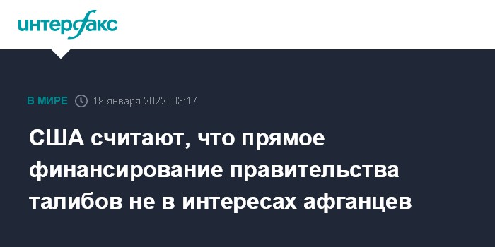 США считают, что прямое финансирование правительства талибов не в интересах афганцев