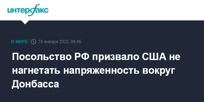 Отмечая, что 18 января высокопоставленные чиновники Белого дома, Госдепартамента и Пентагона "в унисон заявили об отсутствии шагов по деэскалации на российско-украинской границе" и утверждали, что Россия может в любой момент вторгнуться на Украину, в том числе с территории Белоруссии, посольство РФ в очередной раз подчеркнуло, что Россия ни на кого не собирается нападать.