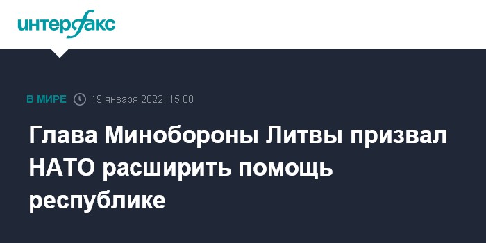 Москва. 19 января. INTERFAX.RU - Министр обороны Литвы Арвидас Анушаускас призвал союзников по НАТО расширить помощь республике, усилить присутствие в составе международного батальона НАТО на море и в миссии по патрулированию воздушного пространства, передает агентство BNS.
