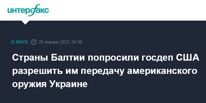 Москва. 20 января. INTERFAX.RU - Эстония, Литва и Латвия обратились в госдепартамент США с просьбой одобрить передачу ими части имеющегося у них оружия американского производства Украине, сообщило издание Politico со ссылкой на источники.