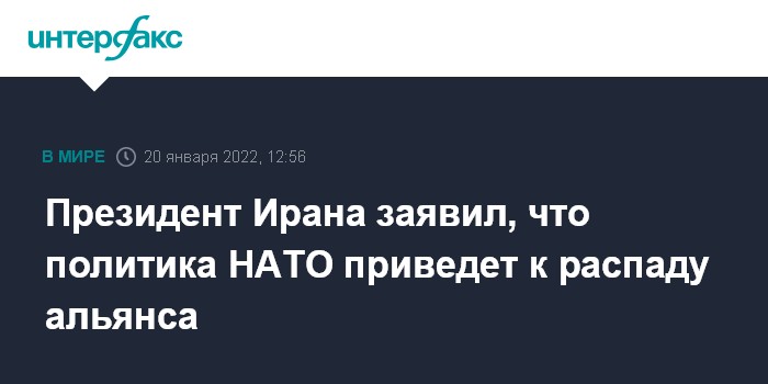 Москва. 20 января. INTERFAX.RU - Президент Ирана Ибрахим Раиси заявил, что тактика НАТО по вмешательству во внутренние дела независимых государств сопряжена с обманом и приведет, в конечном итоге, к распаду альянса.