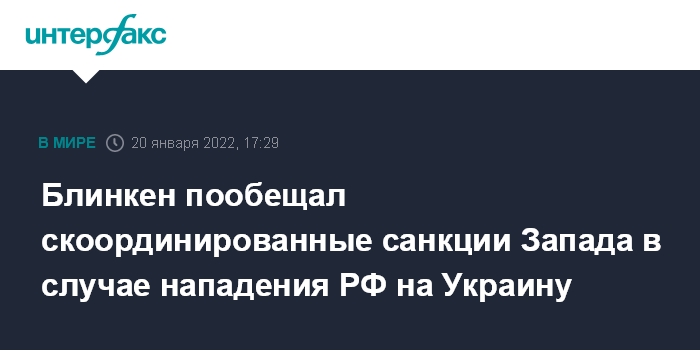 Блинкен пообещал скоординированные санкции Запада в случае нападения РФ на Украину