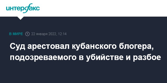 Суд арестовал кубанского блогера, подозреваемого в убийстве и разбое