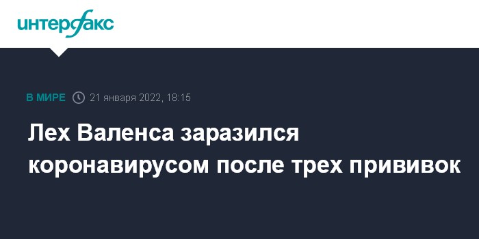 Москва. 21 января. INTERFAX.RU - Бывший президент Польши, исторический лидер профсоюза "Солидарность" Лех Валенса cообщил, что заразился коронавирусом.