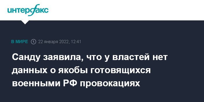 Санду заявила, что у властей нет данных о якобы готовящихся военными РФ провокациях