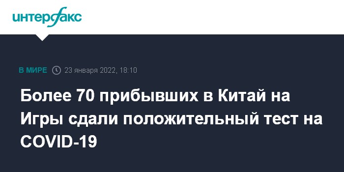 Более 70 прибывших в Китай на Игры сдали положительный тест на COVID-19