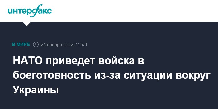 Москва. 24 января. INTERFAX.RU - НАТО приводит свои вооруженные силы в состояние боевой готовности и отправляет дополнительные корабли и истребители в Восточную Европу в связи с наращиванием российских военных сил вблизи Украины.