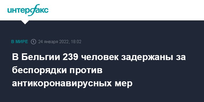 Москва. 24 января. INTERFAX.RU - Бельгийская полиция объявила в понедельник о задержании 239 человек, 11 из которых взяты под стражу. Их обвинили в организации беспорядков и погромов в Брюсселе во время "европейской" акции протеста против антикоронавирусных мер, сообщила газета Le Figaro.