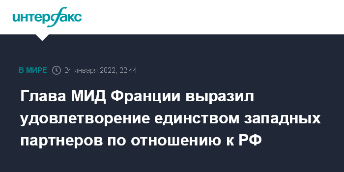 Глава МИД Франции выразил удовлетворение единством западных партнеров по отношению к РФ