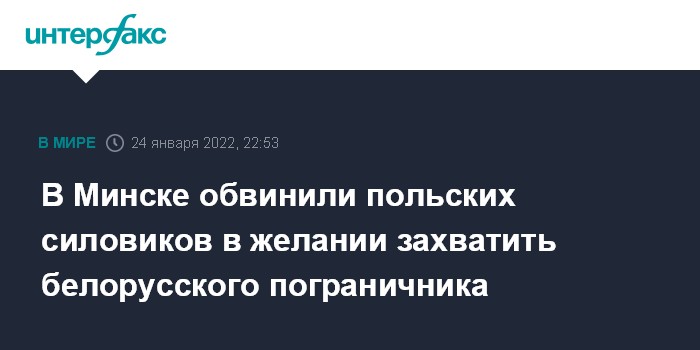 Москва. 24 января. INTERFAX.RU - Руководитель Госпогранкомитета Белоруссии Анатолий Лаппо обвинил польских силовиков в желании захватить белорусского пограничника и заявил о готовности незамедлительно применять оружие при возникновении подобной угрозы или других провокаций со стороны Польши.