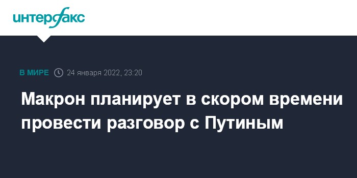 Москва. 24 января. INTERFAX.RU - Президент Франции Эммануэль Макрон рассчитывает в ближайшие дни провести разговор с президентом России Владимиром Путиным, сообщают в понедельник вечером парижские СМИ со ссылкой на Елисейский дворец.