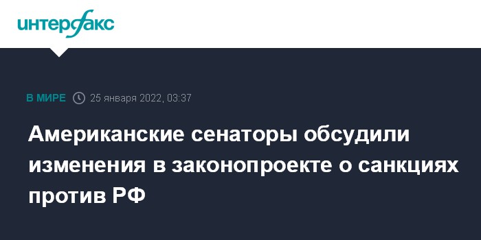 Москва. 25 января. INTERFAX.RU - Восемь американских сенаторов из двух партий встретились в понедельник вечером, чтобы доработать законопроект о санкциях против России на случай возможного вторжения на Украину, сообщает Politico со ссылкой на осведомленные источники.