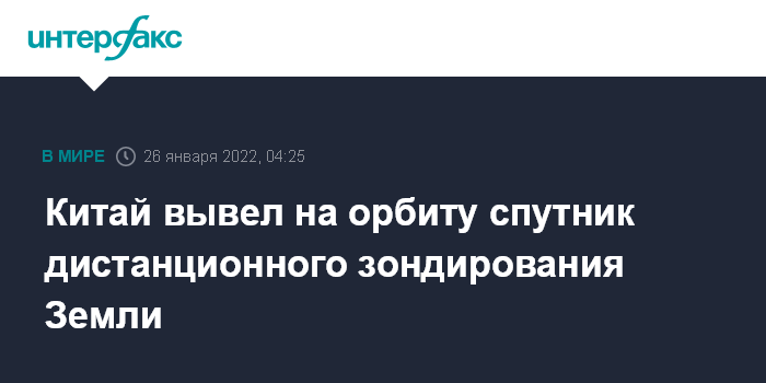 "26 января 2022 года в 7:44 по Пекинскому времени (2:44 мск) ракета-носитель "Чанчжэн-4C" стартовала со стартовой площадки центра запусков космодрома Цзюцюань и успешно вывела спутник дистанционного зондирования Земли L-SAR 01 на штатную орбиту, запуск признан полностью успешным", - говорится в сообщении телеканала.