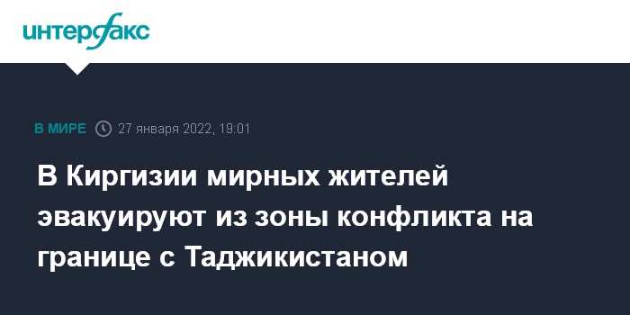 Москва. 27 января. INTERFAX.RU - МЧС Киргизии начало эвакуацию мирного населения из сел, расположенных рядом с зоной конфликта на киргизско-таджикской границе, заявил в четверг "Интерфаксу" начальник Центра управления в кризисных ситуациях МЧС страны Мухаммед Сваров.