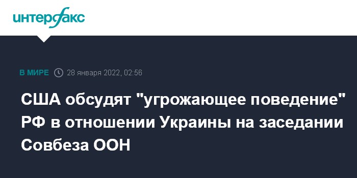"Сегодня, после нескольких недель тесных консультаций с Украиной и партнерами в Совете Безопасности, Соединенные Штаты созвали открытое заседание Совета Безопасности для обсуждения вопроса, имеющего решающее значение для международного мира и безопасности: угрожающее поведение России в отношении Украины и наращивание российских войск на границах Украины и в Белоруссии", - говорится в заявлении постпреда США.