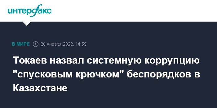 Токаев назвал системную коррупцию "спусковым крючком" беспорядков в Казахстане