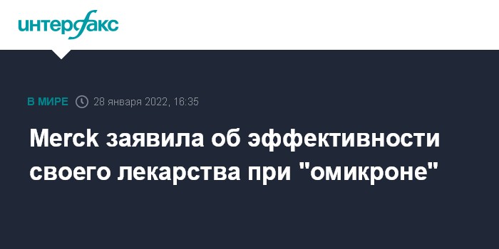 Москва. 28 января. INTERFAX.RU - Фармацевтическая компания Merck заявила, что ее препарат для лечения коронавируса молнупиравир в ходе доклинических испытаний продемонстрировал эффективность от штамма COVID-19 "омикрон".