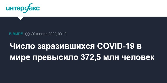 Москва. 30 января. INTERFAX.RU - Число зарегистрированных случаев заражения коронавирусом COVID-19 в мире на утро воскресенья достигло 372 510 413, свидетельствуют данные американского университета Джонса Хопкинса.