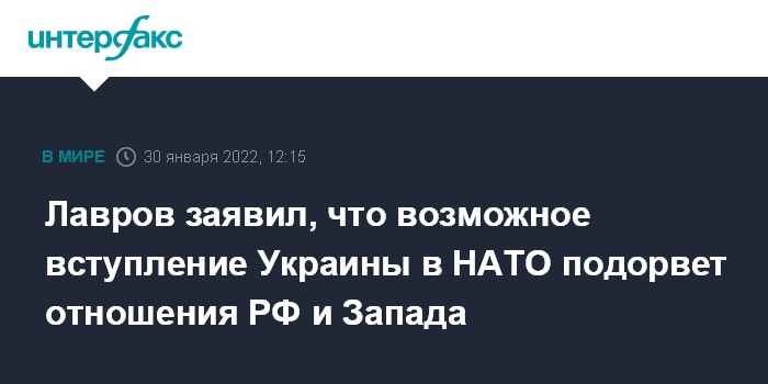 Лавров заявил, что возможное вступление Украины в НАТО подорвет отношения РФ и Запада