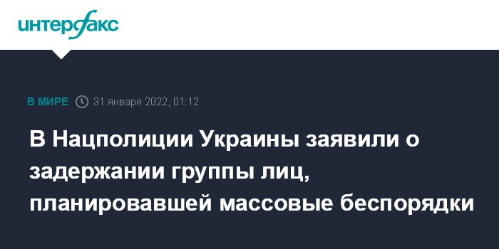 Москва. 31 января. INTERFAX.RU - В Национальной полиции заявили о задержании группы лиц, планировавших массовые беспорядки на территории Украины.