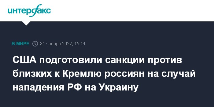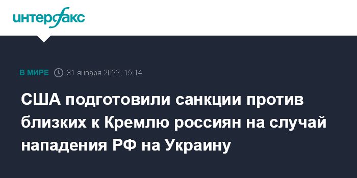 Москва. 31 января. INTERFAX.RU - Администрация США завершила работу над списком людей, против которых введут санкции в случае нападения РФ на Украину, сообщает в понедельник Financial Times.