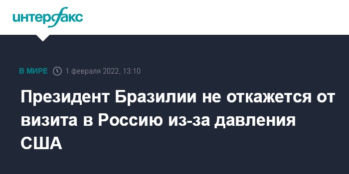 Бразильские СМИ ранее сообщили, что Вашингтон, по их данным, оказывает дипломатическое давление на Бразилию с целью добиться отмены предстоящего в феврале визита Болсонару в РФ. Американские дипломаты выражают озабоченность в связи с этой поездкой, поскольку они считают, что в глазах международного сообщества она будет расценена как поддержка Бразилией политики России по отношению к Украине.