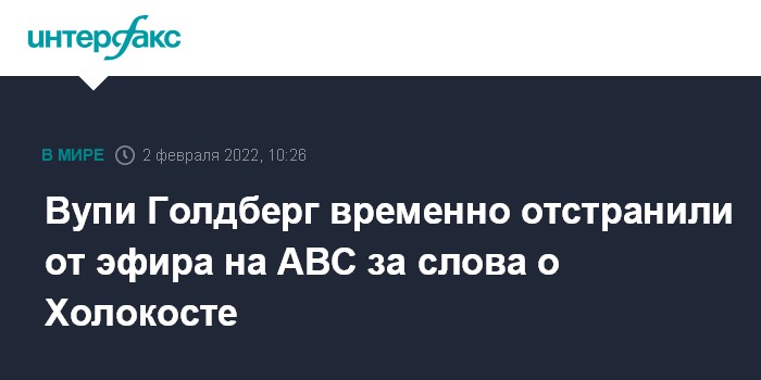 Москва. 2 февраля. INTERFAX.RU - Американскую актрису Вупи Голдберг на две недели отстранили от эфира телеканала ABC, на котором она ведет ток-шоу, за высказывание о Холокосте, которое вызвало поток критики.