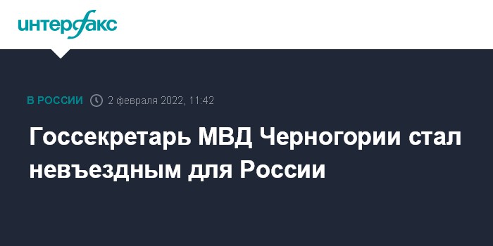 Москва. 2 февраля. INTERFAX.RU - Российский МИД уведомил посольство Черногории о том, что отныне госсекретарю МВД этой страны Зорану Миляничу запрещен въезд в Россию.
