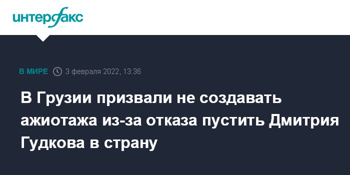 Российского оппозиционера и бывшего депутата Госдумы Дмитрия Гудкова 31 января не впустили в Грузию и вернули в Киев, откуда он прибыл в Тбилисский международный аэропорт. По информации грузинских СМИ, отказ во въезде в страну грузинской пограничной службой был мотивирован тем, что Гудков нарушил закон "Об оккупации", ранее посетив Абхазию.