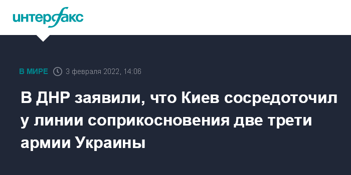 Москва. 3 февраля. INTERFAX.RU - Киев сконцентрировал у линии соприкосновения в Донбассе две трети украинской армии, заявил представитель Народной милиции самопровозглашенной Донецкой народной республики Эдуард Басурин.