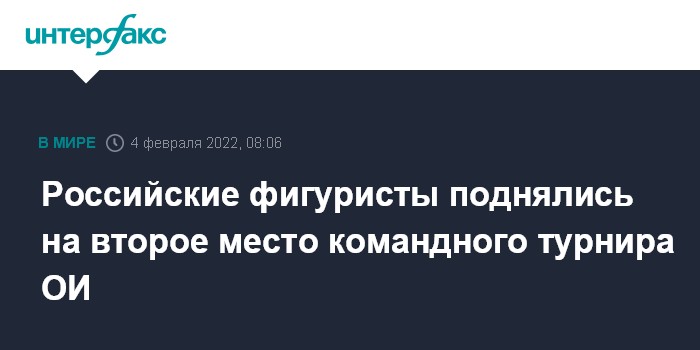 Москва. 4 февраля. INTERFAX.RU - Сборная России занимает второе место в командном турнире по фигурному катанию на зимней Олимпиаде-2022 в Пекине после двух дисциплин.