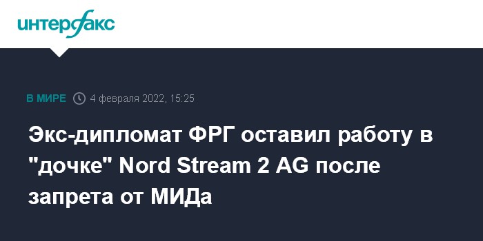 Экс-дипломат ФРГ оставил работу в "дочке" Nord Stream 2 AG после запрета от МИДа