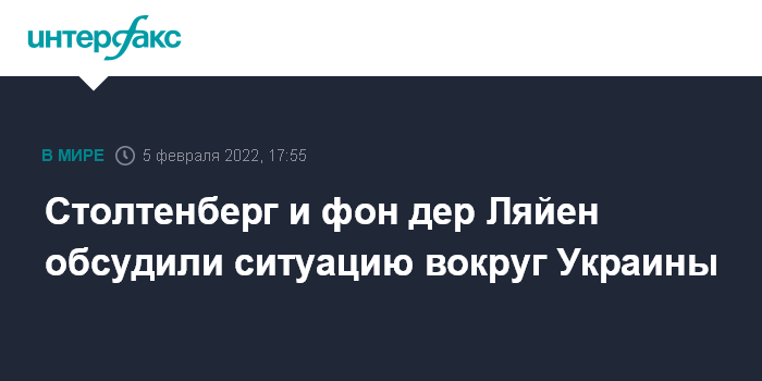 Москва. 5 февраля. INTERFAX.RU - Генсек НАТО Йенс Столтенберг провел разговор с главой Еврокомиссии Урсулой фон дер Ляйен относительно ситуации вокруг Украины, он отметил важность координации НАТО и ЕС по следующим шагам.