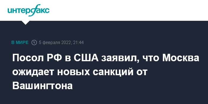 Посол РФ в США заявил, что Москва ожидает новых санкций от Вашингтона