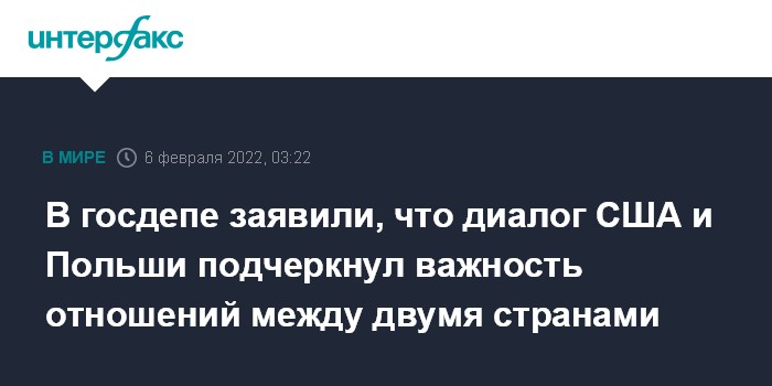 В госдепе заявили, что диалог США и Польши подчеркнул важность отношений между двумя странами